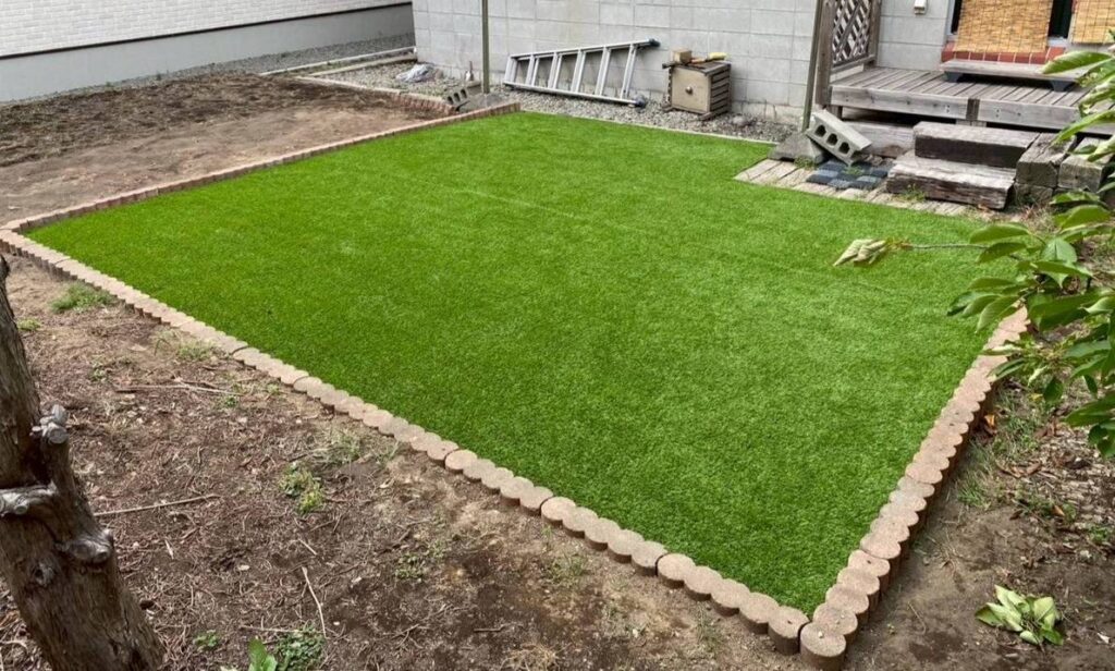 今回はお庭の雑草にお悩みのお客様からのご依頼で、人工芝の敷設工事を行いました。